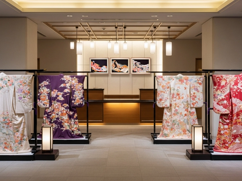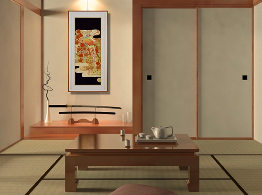 特許取得済である着物の額装織により、日本の伝統文化である「着物」を新しい美術鑑賞品として楽しめるように致しました。